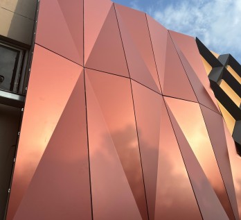 鋁單板變形的表現(xiàn)形式多種多樣。有些鋁單板會(huì)出現(xiàn)局部的凹陷或凸起,就像原本平整的鏡面出現(xiàn)了坑洼,破壞了建筑表面的平滑感。在一些大型建筑的外立面上,這種局部變形會(huì)非常顯眼,嚴(yán)重影響建筑的外觀形象。還有些鋁單板會(huì)發(fā)生整體的彎曲或扭曲,使得原本整齊排列的鋁單板變得參差不齊,破壞了建筑的整體協(xié)調(diào)性。特別是在一些追求簡潔、流暢線條的現(xiàn)代建筑中,鋁單板的整體變形會(huì)讓建筑的設(shè)計(jì)美感大打折扣。